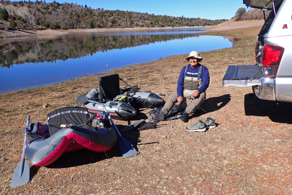 This was my third trip to Red Creek Reservoir (a.k.a. Paragonah Reservoir), and my friend Luis’s first trip. Previous trips to Red Creek were in July 2009 and August 2017, so it has been eight years since I have fished this water. It seems to be one of Utah’s lesser known reservoirs. Perhaps that’s because it is 30 miles east of the town of Paragonah, which is on I-15 about halfway between Las Vegas and Salt Lake City, which is to say that there are more popular waters to fish closer to Las Vegas and Salt Lake. No matter why, weekday trips to Paragonah seem to provide pleasant solitude. On this trip we only witnessed one man, in a Toyota 4Runner, and he seemed to be inspecting the reservoir; he was not fishing.